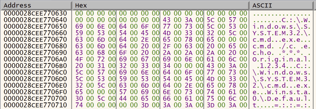 lRet = WriteProcessMemory(processInfo.hProcess, pCmdLine + UBound(newCmdLineBuf), unicodeNull(0), 2, r)