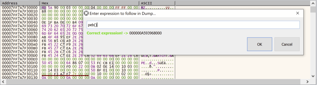 pPeb = BytesToLongPtr(processBasicInfo, 8)